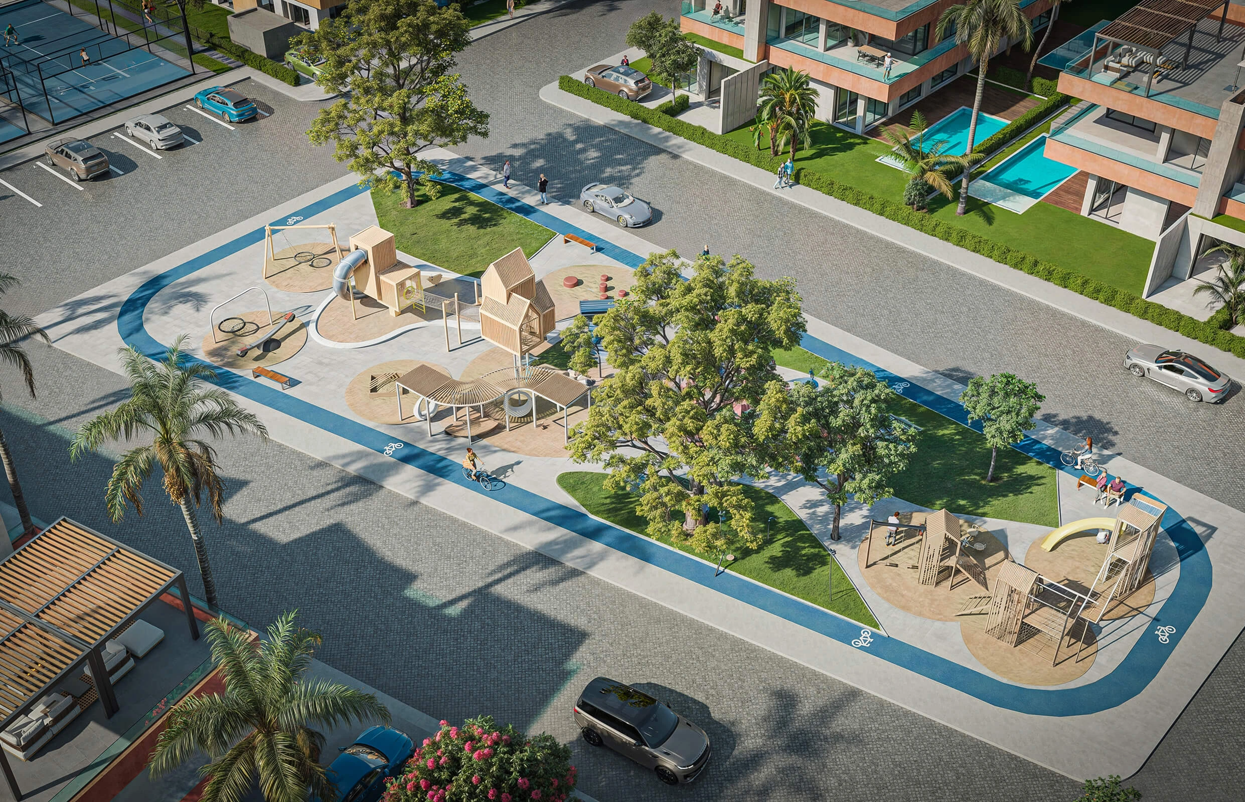 Circulations piétonnes, allées paysagées, cœur vert végétalisé… tout dans ce projet a été pensé pour fluidifier les parcours et réserver la tranquillité.