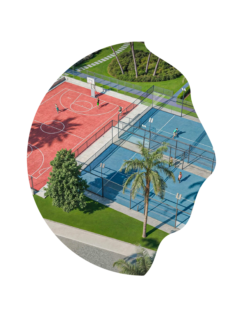 Autour des résidences, le domaine propose des espaces dédiés au sport et à l'activité physique, des cheminements piétons paysagers invitant à la promenade, ainsi que des aires de loisirs adaptées aux plus jeunes. Des commerces de proximité viennent faciliter le quotidien, tandis qu'une agréable balade aménagée autour du plan d'eau offre un véritable moment de respiration.